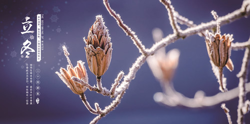 立冬,二十四節氣之一,鬥指西北爲立冬,太陽黃經爲225°,於公曆11月7-8日之間交節。立冬是季節類節氣,我們常将這一天作爲冬季的開始,進入冬季,天寒地冷,是萬物生機潛伏閉藏的季節,此時人體血液循環減慢。“立冬”這一天北方人有吃餃子的習慣,南方人則吃雞鴨魚肉,稱“補冬”,也稱“補嘴空”。